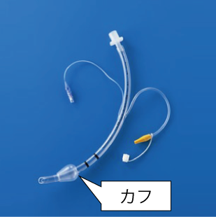①カフとは、気管挿管チューブや気管切開カニューレの先端にある風船状の空気袋です。(右図)